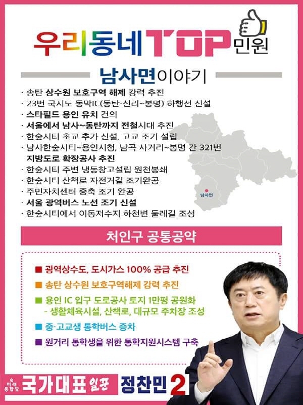 “처인1호 지하철에 남사역 신설하고, 321번 도로 확장하겠습니다.”