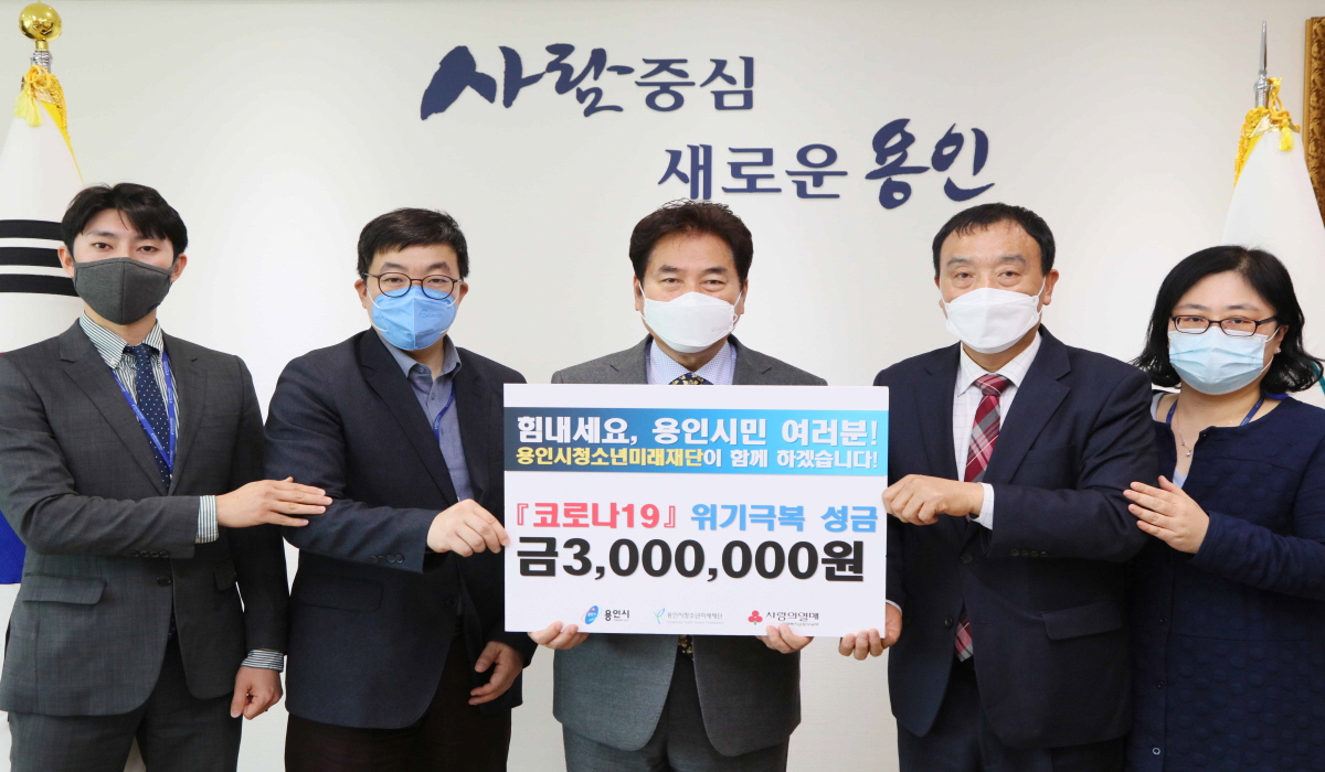 용인시청소년미래재단 신현수 대표이사 등 관계자 4명이 시장실을 찾아와, 코로나19로 어려움을 겪고 있는 분들을 위해 써달라며, 성금 300만원을 전달했다.
