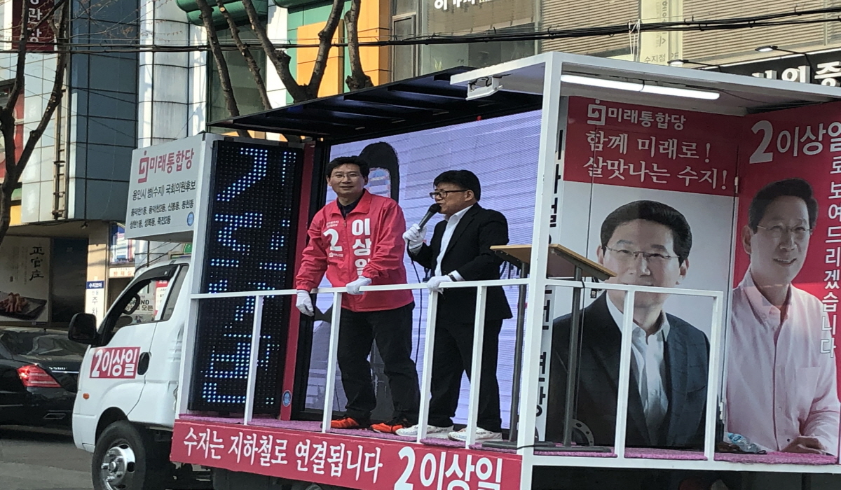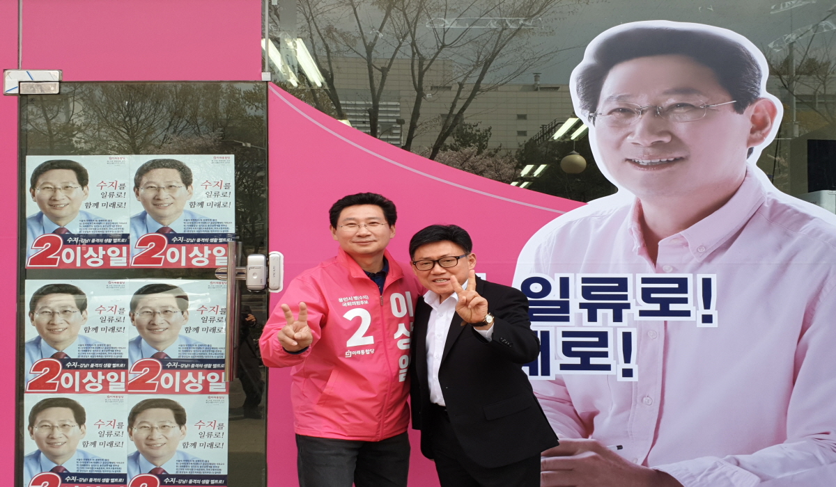 한편 이날 오후 이상일 후보는 개그맨 엄용수씨와 선거 유세 현장에 함께 등장했다. 개그맨 엄용수는 “이상일 후보가 국회에 진출하여 이 지역을 위한 예산도 확보하고 우리 도시가 더 크게 발전해나갈 수 있는 장치를 마련할 것”이라며 응원했다.