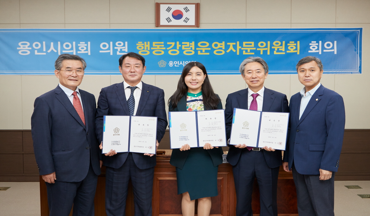 용인시의회(의장 이건한)는 19일 오전 11시 도시건설위원회에서 용인시의회 의원 행동강령운영 자문위원회 위촉장을 전달하고 회의를 개최했다.