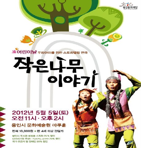 어린이를 위한 스토리텔링 연극 ‘작은 나무 이야기’가 오는 5월 5일(토) 용인시 문화예술원 마루홀 무대에 오른다. 4세 이상 관람가.