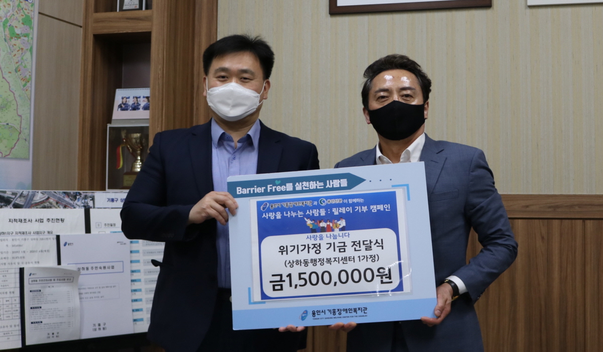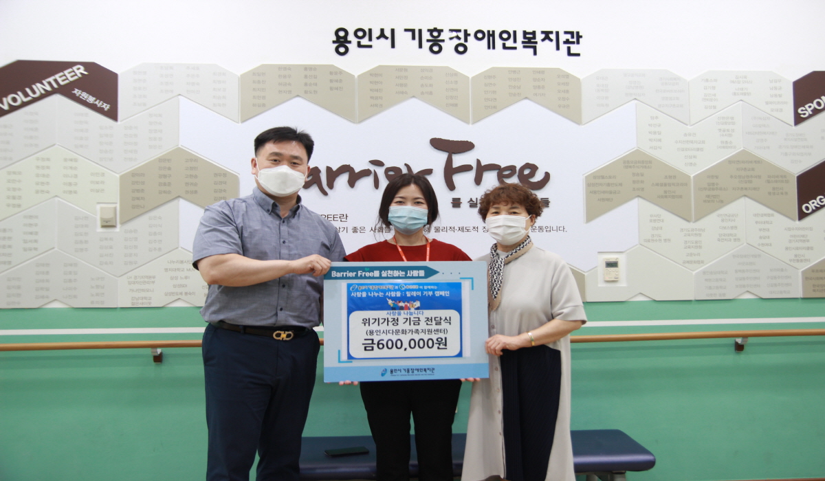 용인시는 15일 기흥장애인복지관이, 관내 위기가정 14가구에 1200만원의 성금을 전달했다고 밝혔다.