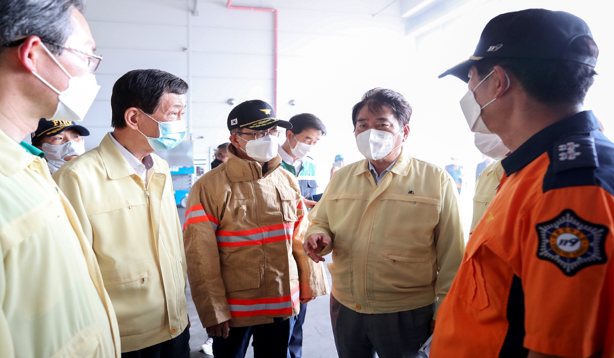 백군기 용인시장은 21일 처인구 양지면 제일리 양지SLC물류센터 화재 현장을 방문해, 구조활동을 지원하고 사고 수습에 최선을 다할 것을 당부했다.