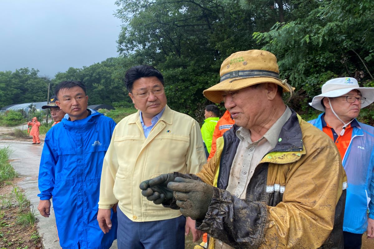 엄태준 이천시장은 2일 쏟아진 폭우로 붕괴된, 율면 산양저수지를 찾아 피해 현황을 살피고 주민들을 위로했다.
