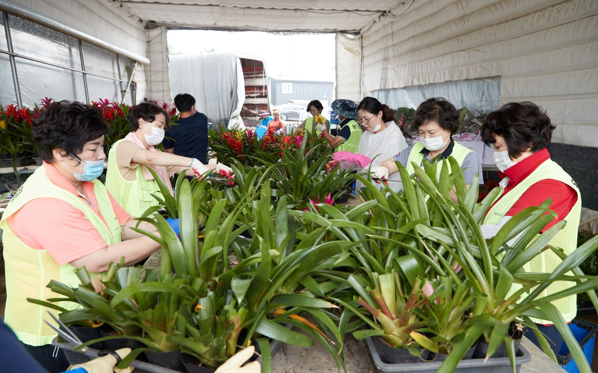 의원들과 의회사무국 직원 등은 12일 오전 9시 30분부터, 처인구 원삼면 이레 농원에서 침수로 인해 상품성을 잃은 식물의 흙과 화분을 분리해 정리하고, 살릴 수 있는 화분에는 흙을 채워 넣는 등 복구 작업을 진행했다.