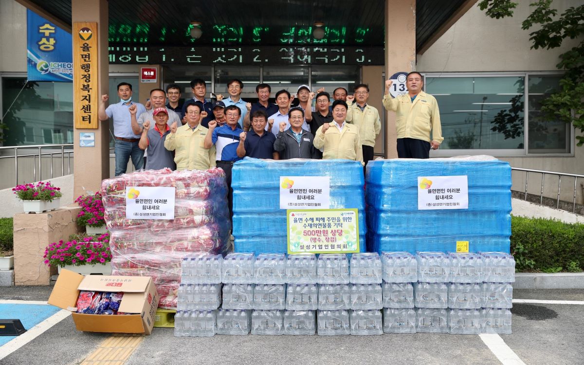 설성기업인협의회(이하‘협의회’)는 지난 14일 집중호우로 피해를 입은 율면 수해지역 주민 및 자원봉사자를 위해 500만원 상당의 생수(8,400병)와 장갑(6,100쪽)을 기탁했다.