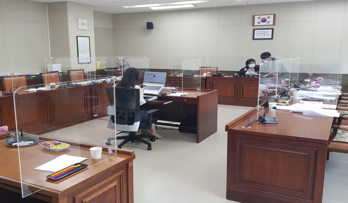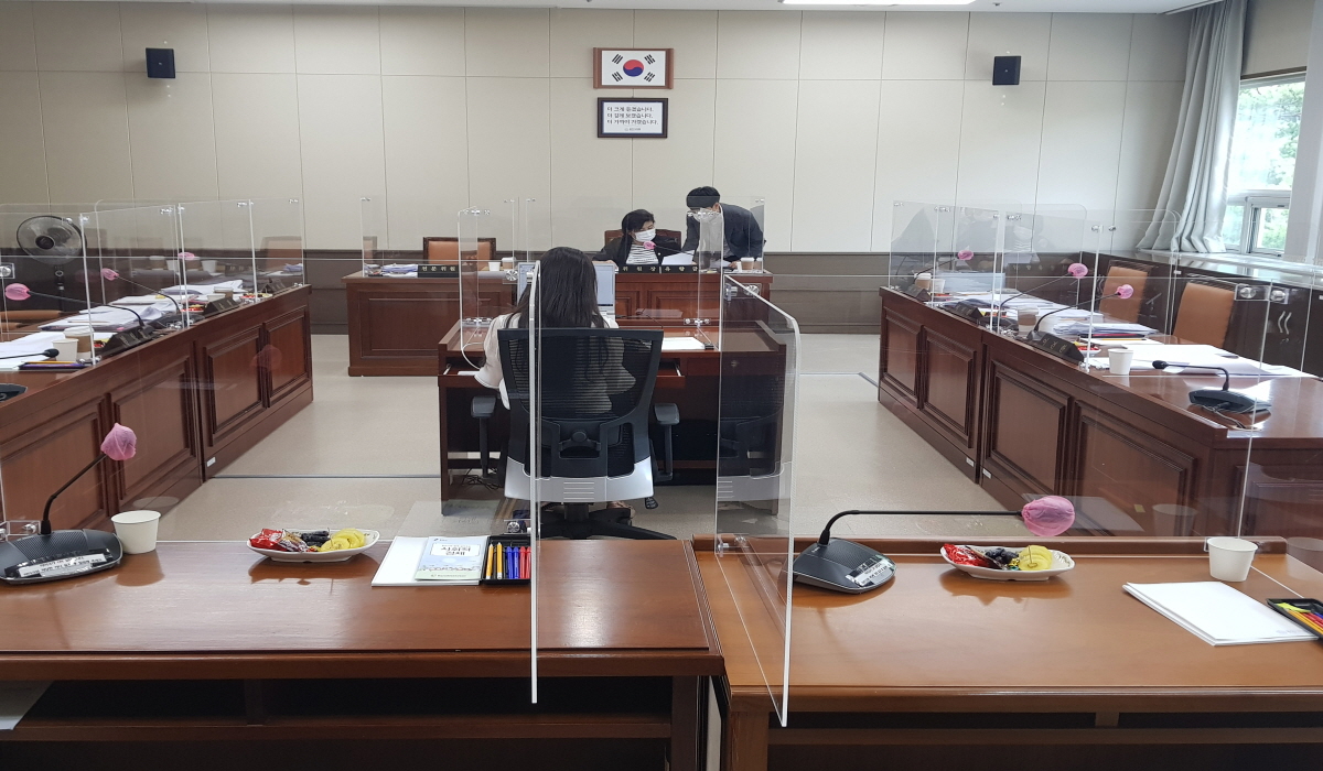 9일 용인시의회 임시의회가열리는 회의장마다 코로나19 방역에 대비해서 철저한 보호막을 설치하여 안전하게 회의를 진행하고있다. 저작권자 © 용인종합뉴스 무단전재 및 재배포 금지 용인종합뉴스 다른기사 보기
