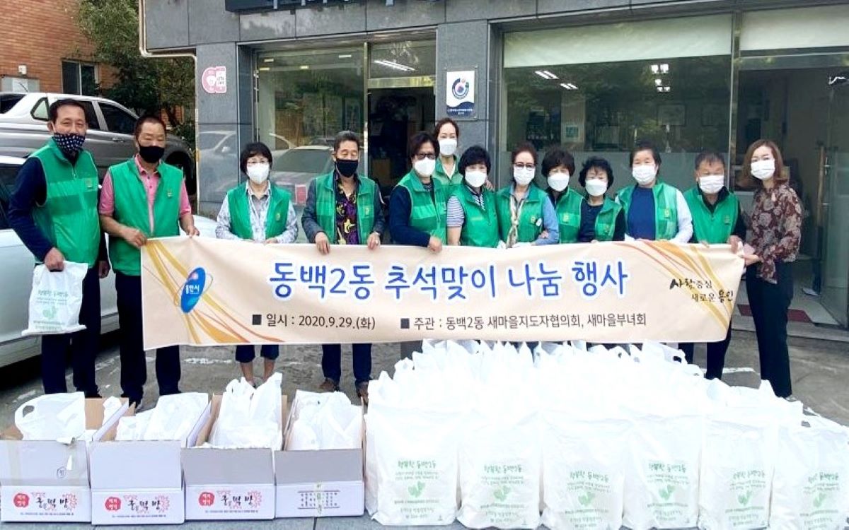 같은 날 동백2동에선 새마을지도자협의회와, 새마을부녀회가 홀로 어르신 등 취약계층 50가구에 송편과 생활용품 등을 전달했다.
