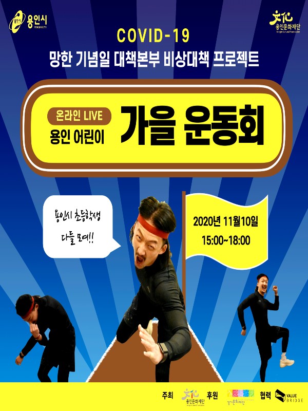 (재)용인문화재단(이하 ‘재단’)은 코로나19로, 가을운동회 운영이 보류된 용인시에 소재한 초등학교의 재학생을 대상으로 ‘온라인 가을 운동회’를 오는 11월 10일(화) 개최한다.