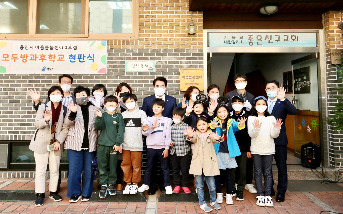 용인시는 30일 수지구 동천동 모두 방과후 학교서, 주민 공동체가 자발적으로 나서 아이들을 돌보는, 마을돌봄센터 1호점 현판식이 열렸다고 밝혔다.