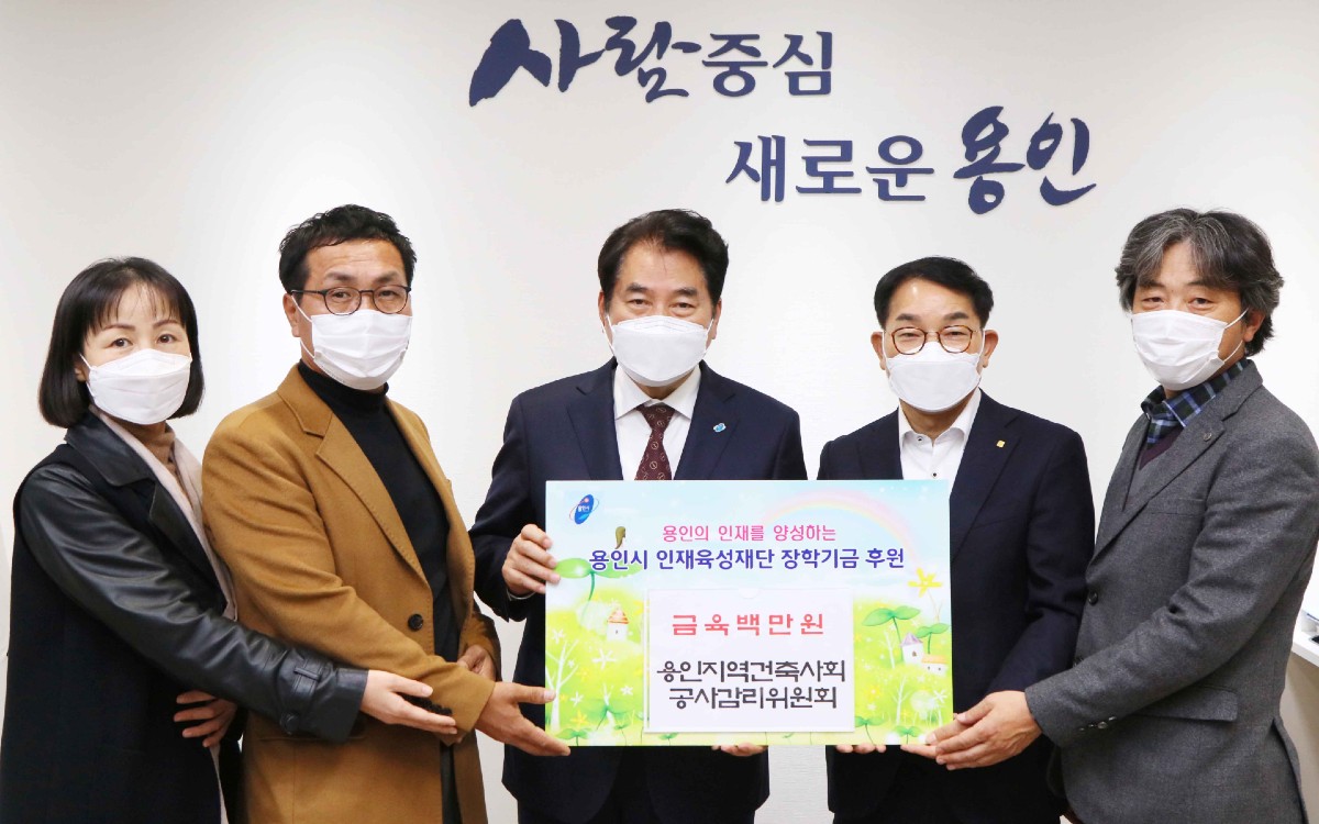 용인시는 3일 용인건축사회와 공사감리위원회서 백군기 시장실을 방문해, 용인시 인재육성재단에 600만원의 장학기금을 기탁했다고 밝혔다.