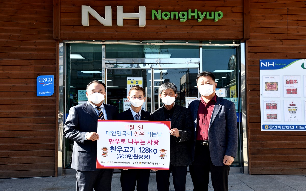 후원 전달식에는 전국한우협회 신동규 용인시지부장과, 용인축산농협 최재학 조합장과 임직원, 용인시처인노인복지관 김기태 관장이 참석하였다.