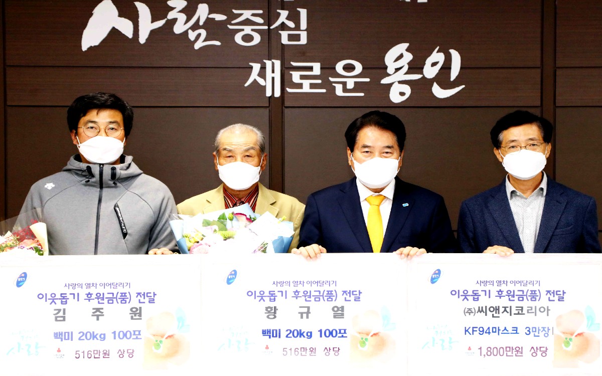 용인시는 6일 관내 마스크제조업체 ㈜씨앤지코리아와 백암면 주민 황규열‧김주원씨가 어려운 이웃을 돕는데 써달라며 성품을 기탁했다고 밝혔다.