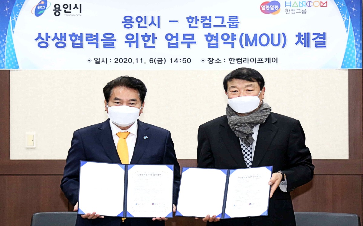 한편, 한컴그룹은 이날 협약식이 끝난 뒤, 관내 어려운 이웃을 위해 사용해달라며 마스크 7만장을 기탁했다.