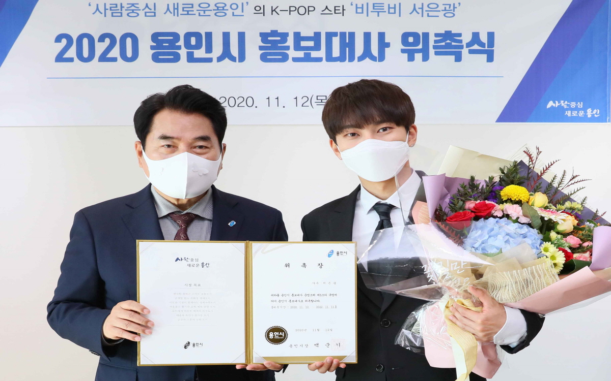 용인시는 12일 지역 출신 가수 서은광(그룹 비투비 리더)씨를, 시 홍보대사로 위촉하고 시장실에서 위촉장을 전달했다.