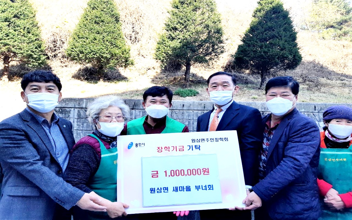 용인시 처인구 원삼면은 지난 12일 새마을부녀회가, 원삼면 주민장학회에 부녀회원들이 십시일반으로 모은 100만원을 기탁했다고 밝혔다.