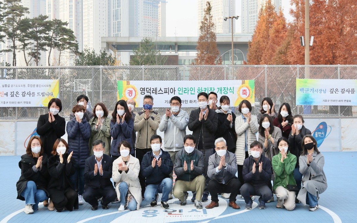 백군기 용인시장은 15일 기흥구 영덕동 영덕레스피아에 조성된, 인라인하키장 개장식에 참여해 관계자들을 격려했다.