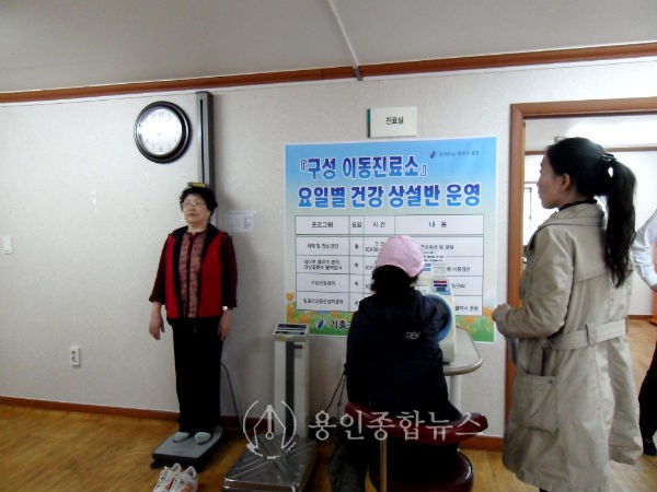 용인시 기흥구보건소는 구성지역 주민들이 구 보건소와 떨어져 있기 때문에 이용하기에 불편한 점을 감안, 건강 위험군에 속한 주민들을 대상으로 구성이동진료소를 개설해 요일별 다양한 프로그램으로 건강증진서비스 강화 사업을 활발히 운영하고 있다.