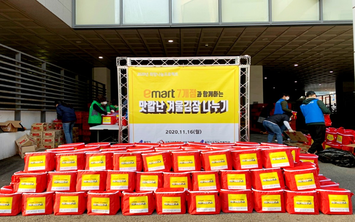 용인시는 16일 이마트가 처인구, 기흥구, 수지구 관내 어려운 이웃을 위해 써달라며, 구별로 200가구씩 총 600곳에 김치를 전달했다고 밝혔다.