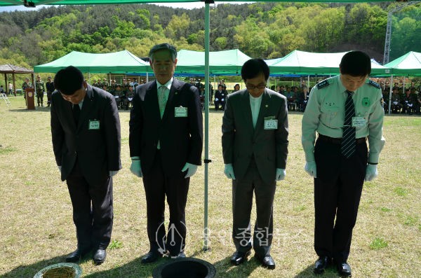육군 55사단(사단장 육군소장 박원수)은 5월 2일 오후 2시부터 용인시 처인구 유림동에 위치한 용인궁도장(용무정)에서 박원수 사단장 주관으로 매우 뜻 깊은 6ㆍ25 전사자 유해 발굴 개토식을 가졌다.