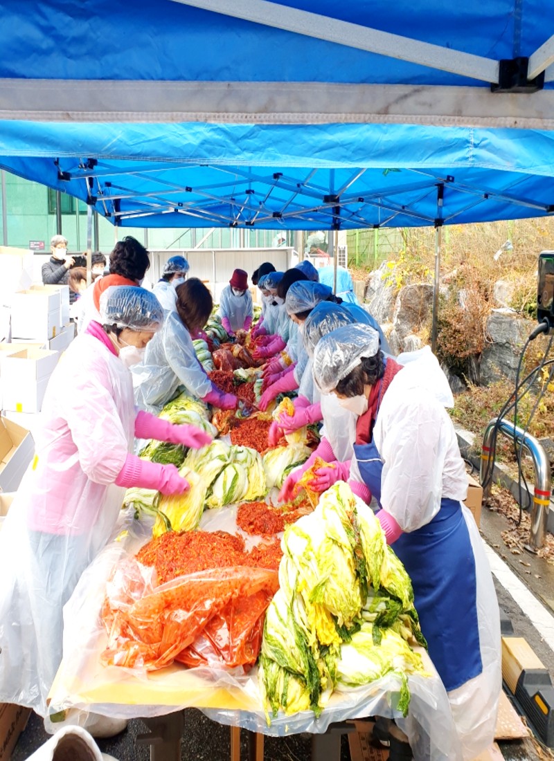 동은 전달받은 김치를 관내 기초생활수급권자, 차상위 계층 등 생활에 어려움을 겪고 있는 100가구에 비대면으로 전달할 예정이다.