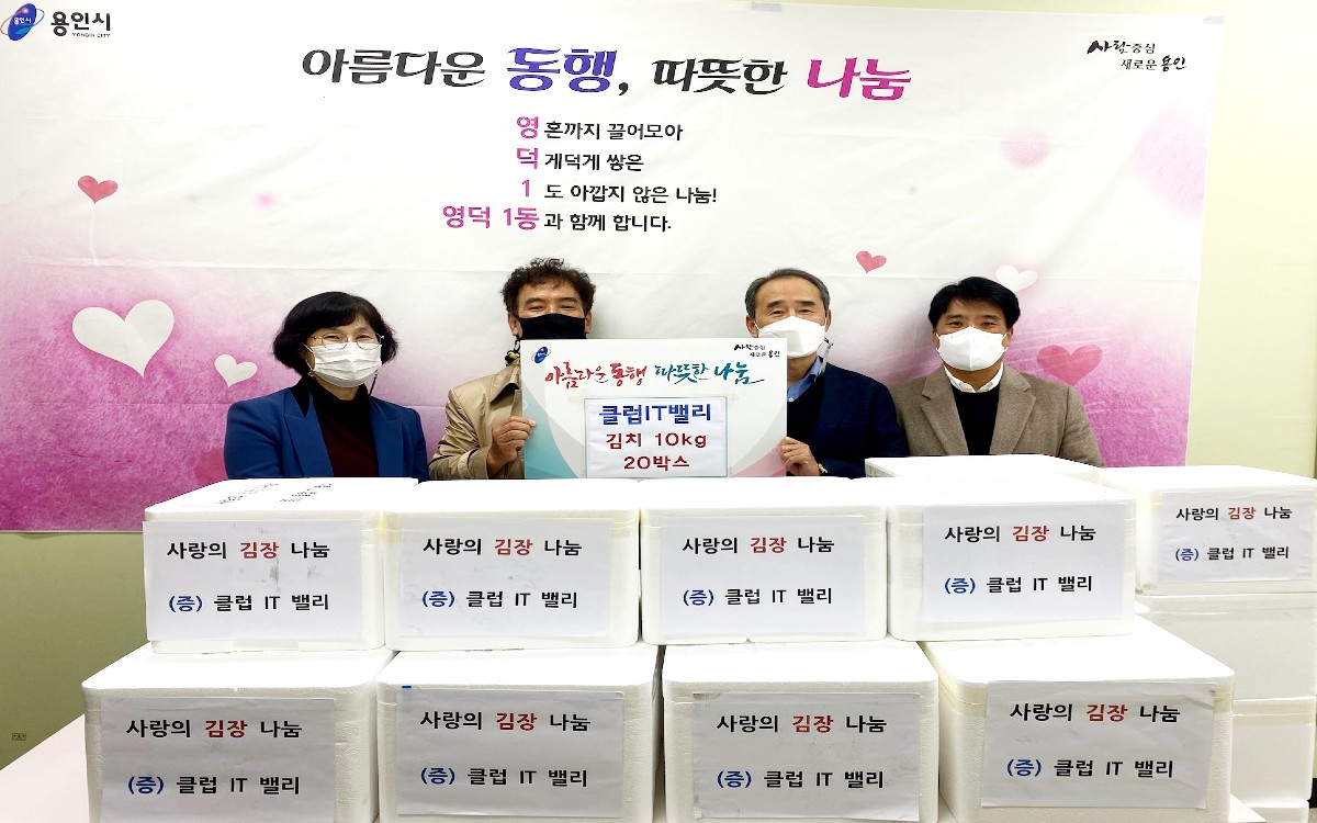 같은 날 영덕1동에서는 흥덕 IT밸리센터 내 기업 대표들의 모임인 클럽IT밸리가 홀로 어르신 등 소외 계층을 돕고 싶다며 10㎏짜리 김치 20상자를 전달했다.