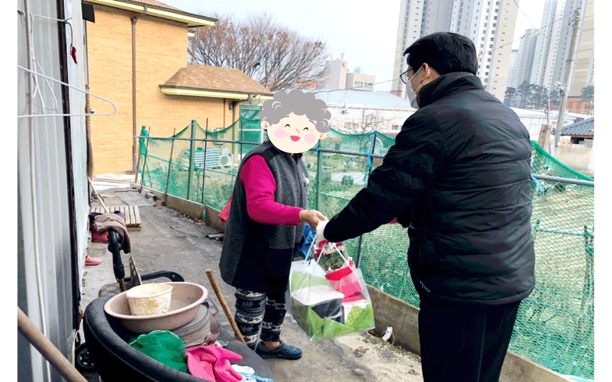 지구촌사회복지재단에서 운영하는 용인시수지노인복지관(관장 한근식)에서는 지난 10일, 취약 어르신들과 매년 진행하는 송년행사를 개별로 찾아가 안부를 묻고, 선물드리는 찾아가는 송년행사로 대체하여 진행하였다.