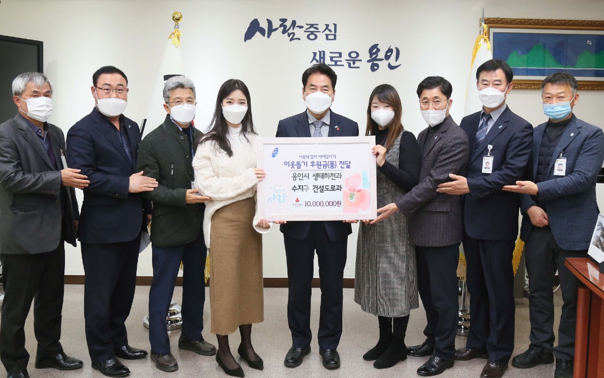 용인시는 14일 시청 생태하천과와 수지구 건설도로과 직원들이 시장실을 방문해, 경기도로부터 받은 포상금 1천만원을 어려운 이웃에게 써달라며 기탁했다고 밝혔다.