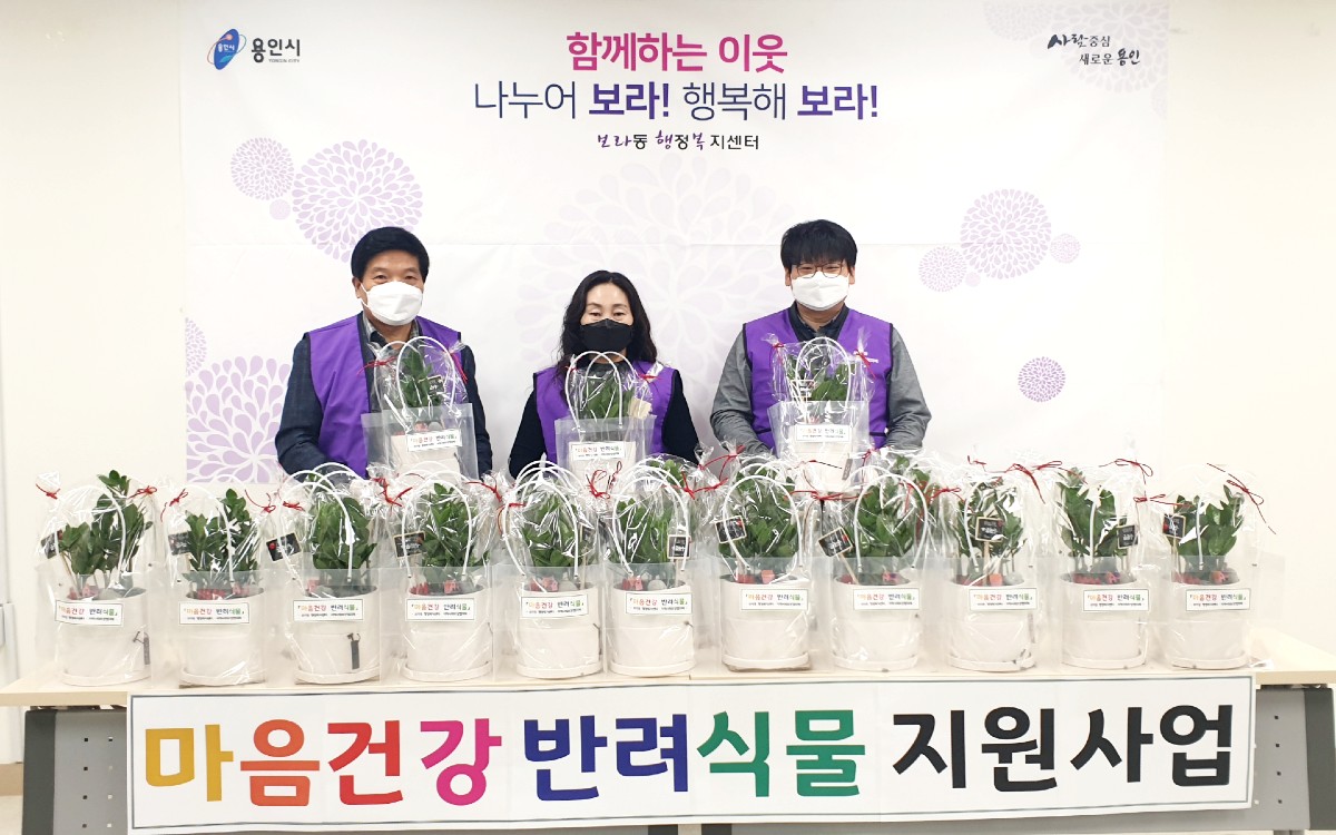 용인시 기흥구 보라동과 동백3동은 16일, 지역사회보장협의체서 취약계층의 심리적 안정과 건강을 위해 반려식물과 식품을 지원했다고 밝혔다.