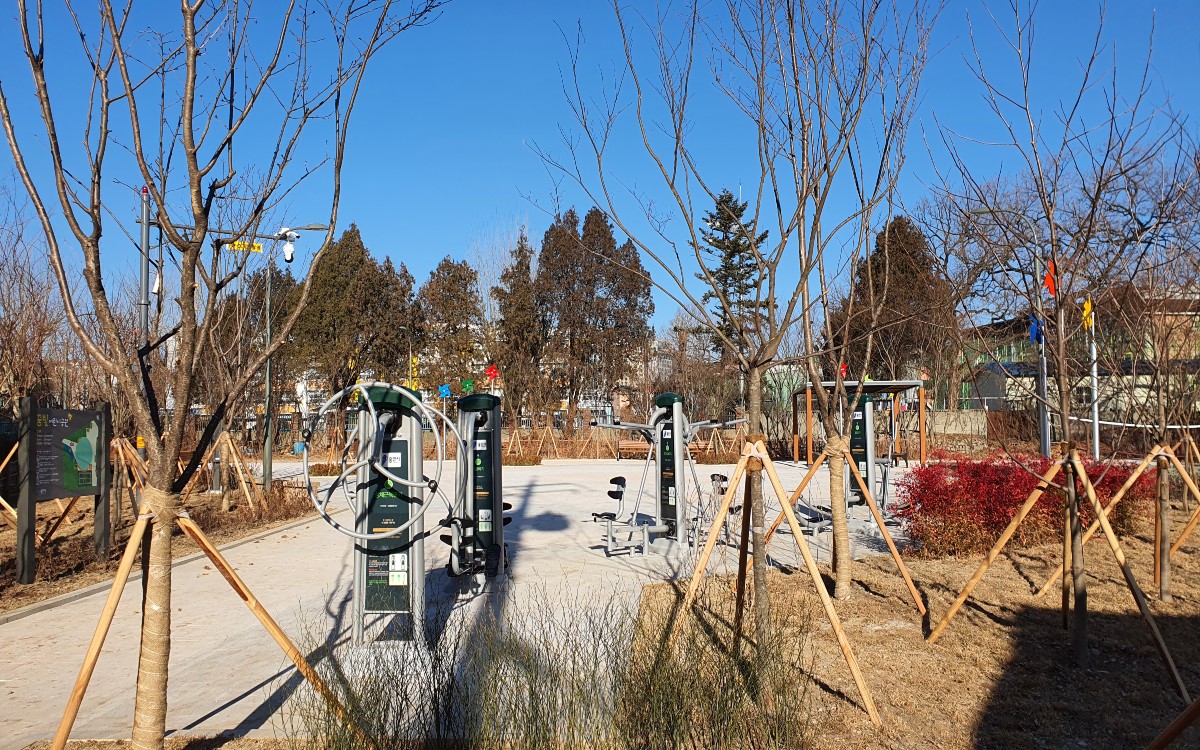 공원 주변에는 느티나무, 왕벚나무 등 다양한 수목 1,300주를 심어 경관을 개선했고 배드민턴장 1면, 원형놀이광장 1개, 바람개비 조형물 9개 등 시설물을 설치해 모든 세대가 이용할 수 있도록 했다.