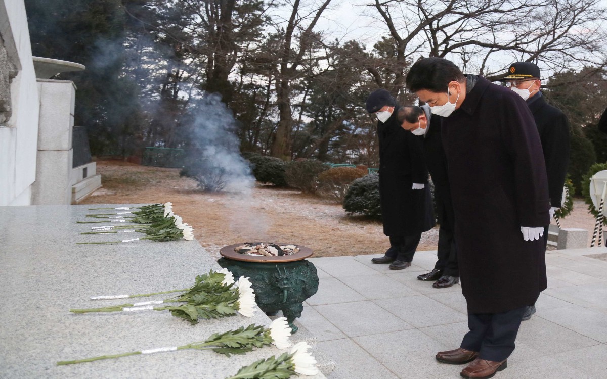백군기 용인시장이 1일 새해를 맞아 용인중앙공원을 방문해 현충탑에 참배했다.