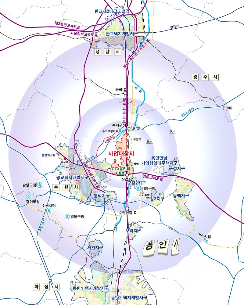 경부고속도로와 영동고속도로가 교차하는 신갈JC에 위치한 경기용인 플랫폼시티는 GTX-A노선(용인역) 개통에 따라 서울의 주요 업무지구(강남, 삼성 등)의 접근성이 향상될 예정이며, 복합환승센터, 지식기반첨단산업, 상업, 주거 등의 다양한 기능을 도입할 계획이다.