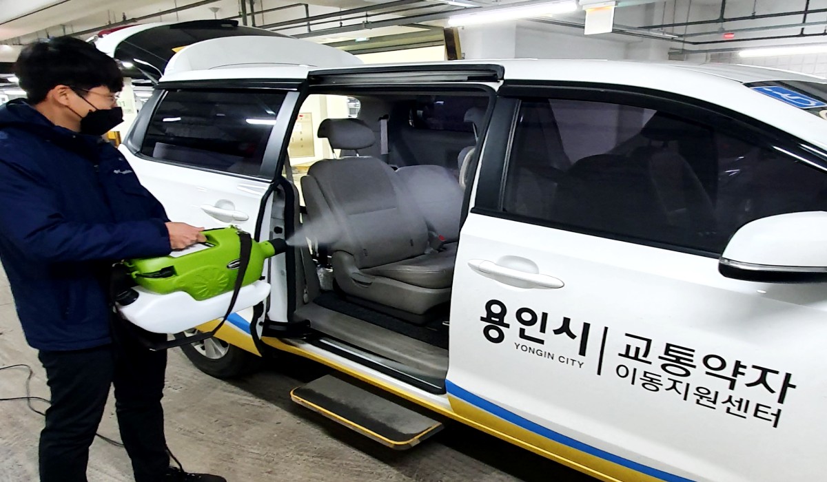 교통약자이동지원센터는 1년 365일 연중무휴 신체적인 어려움이 있는 관내 시민들의 두 발이 돼 교통 편의를 제공하는 복지시설로, 소독 장비를이용해 일 1회 이상 차량 방역을 시행 중이며, 고객의 차량 이용 완료시마다 운전원이 차량 내부를 소독하는 등 위생 기준을 강화하며 정상 운영 중이다.