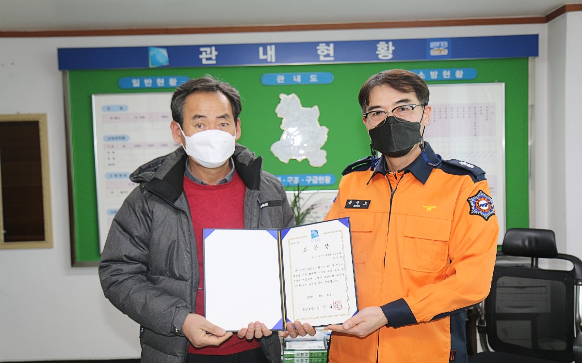 “용기있는 행동으로 소중한 인명과, 재산피해를 막을 수 있었다.”