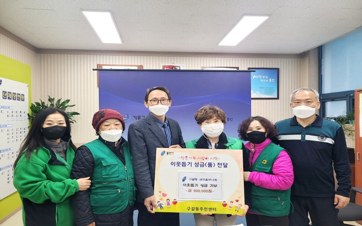 아울러 구갈동에도 새마을부녀회(부녀회장 배경미)가 이웃돕기 성금 50만 원을 기부했다. 성금은 설 명절에 판매한 떡국 떡의 수익금으로 마련됐다.