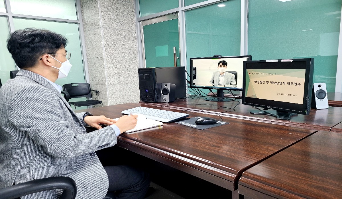 용인교육지원청(교육장 이윤식)이 3월 9일 관내 공립 단설 유치원·초·중·고등학교 행정실장 및 계약담당자 350명을 대상으로, 학교시설공사 계약업무 연수를 온라인(ZOOM)으로 실시하였다.