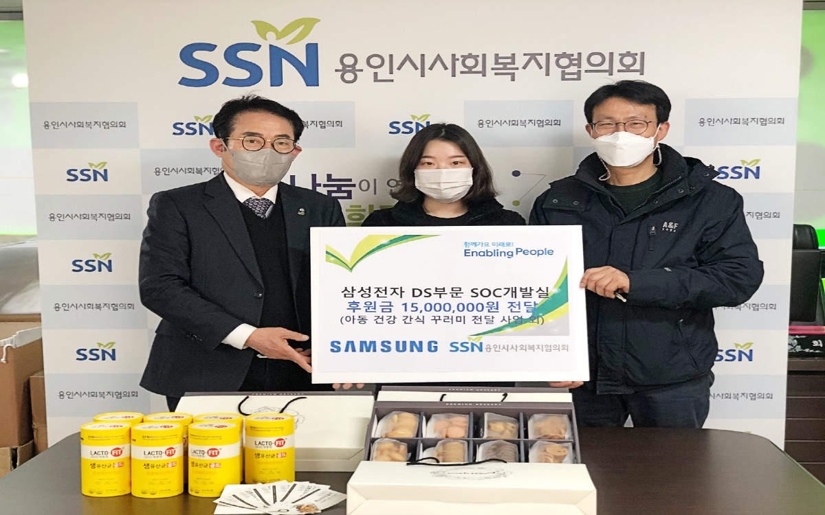 이번 사업은 지난 2월 삼성전자 DS부문 System LSI사업부 SOC개발실 임직원들이 업무성과로 받은 시상금 일부 15,000,000원을, 코로나 장기화로 어려움을 겪고 있는 용인 지역 취약계층 아동을 지원하기로 뜻을 모아, 후원하게 되었다고 밝혔다.