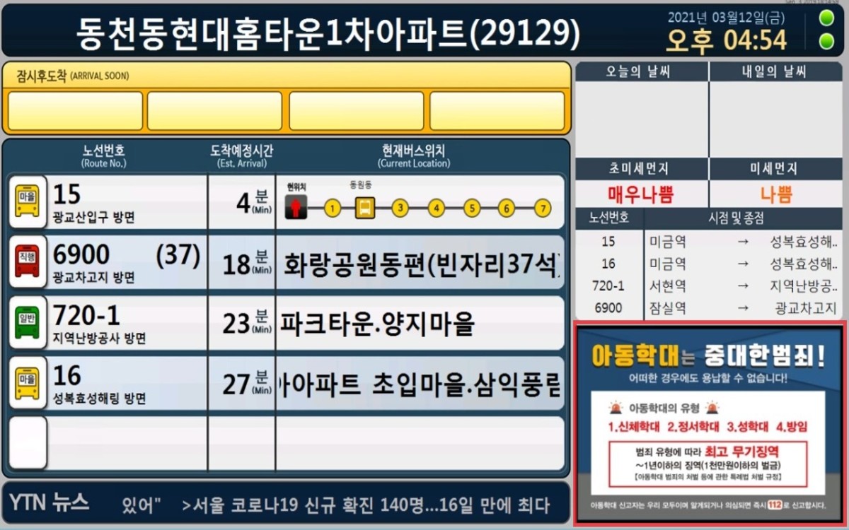 또 관내 750개소 버스정류장 LCD 전광판 및, 용인시 아동시청 홈페이지 내에 아동학대 예방 홍보물 및 교육 동영상을 게시한다.