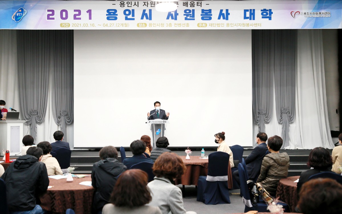 백군기 용인시장이 16일 ‘2021 용인시 자원봉사대학 개강식’에 참석해 자원봉사자들의 새출발을 응원했다.