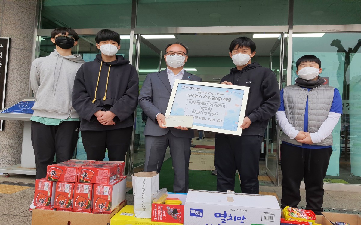 또 이날 구성동에는 언남동 소재 대안학교 마운틴체리아카데미(MCA)가 성금과 식품상자 4박스를 기부했다.
