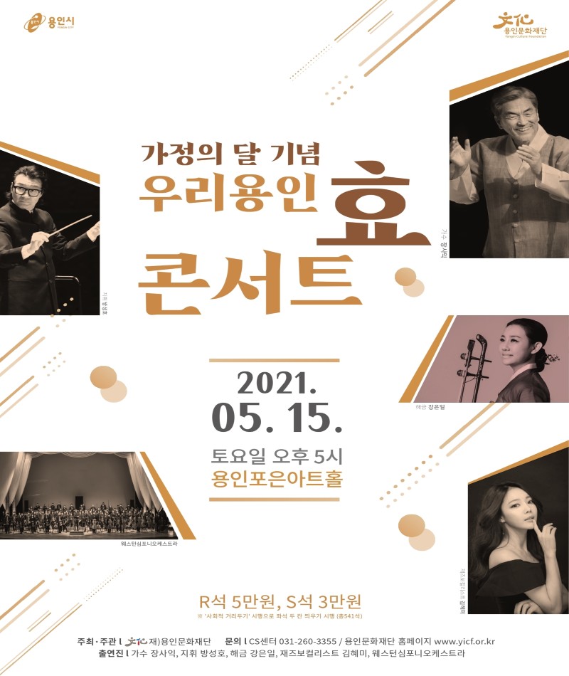 가정의 달을 기념하여 진행되는 <우리 용인 효 콘서트>는 R석 5만원, S석 3만원으로 초등학생 이상부터 관람할 수 있으며, 공연티켓은 용인문화재단 홈페이지(www.yicf.or.kr)과 인터파크 티켓 또는 전화(031-260-3355/3358)를 통해 사전예매가 가능하다.