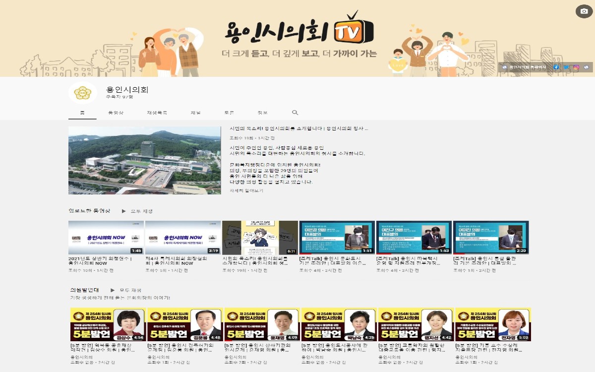 유튜브 내에서 ‘용인시의회’로 검색하면 쉽게 찾을 수 있다.