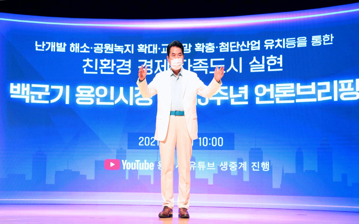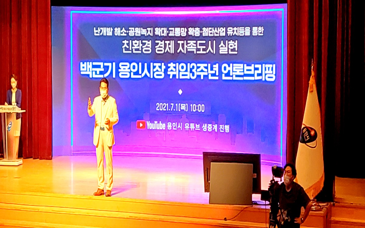 백군기 용인시장은 1일 시청 에이스홀에서 취임 3주년 언론간담회를 열어‘도시 균형’을 강조한 민선 7기 후반기 미래 과제를 ‘친환경 생태 경제자족도시 조성’으로 제시했다.