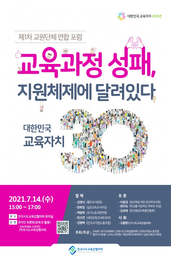 이번 포럼은 협의회가 대한민국 교육자치 30주년 일환으로 학생, 학부모, 청년, 교원, 지역공동체가 참여하는 「교육공동체 토론회」 중 교원 분야로서 교육부, 국가교육회의, 전국시도교육감협의회와 5개 교원단체(전국교직원노동조합, 좋은교사운동, 교사노동조합연맹, 새로운학교네트워크, 실천교육교사모임)가 공동으로 개최했으며, 9월중 2차 포럼을 실시한다.