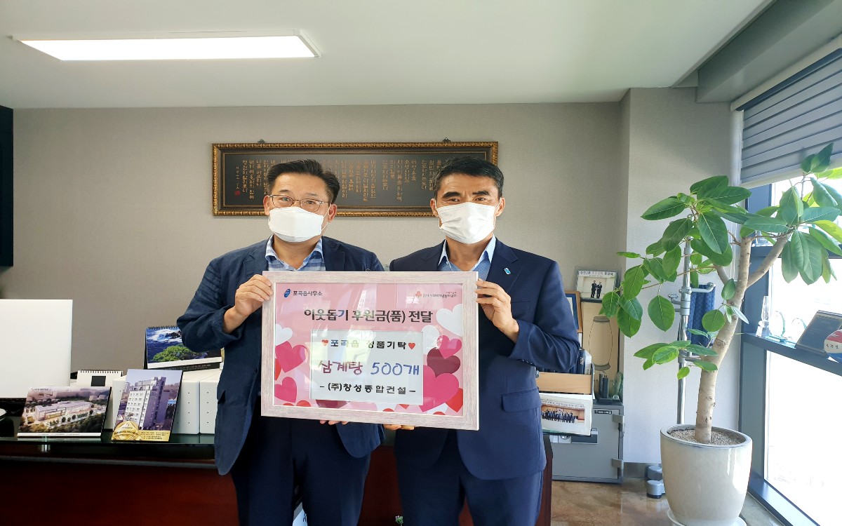 용인시 처인구 포곡읍은 16일 유방동 소재 ㈜창성종합건설 이한철 대표가, 중복을 앞두고 어르신들을 위해, 400만원 상당의 삼계탕 500팩을 기탁했다고 밝혔다.