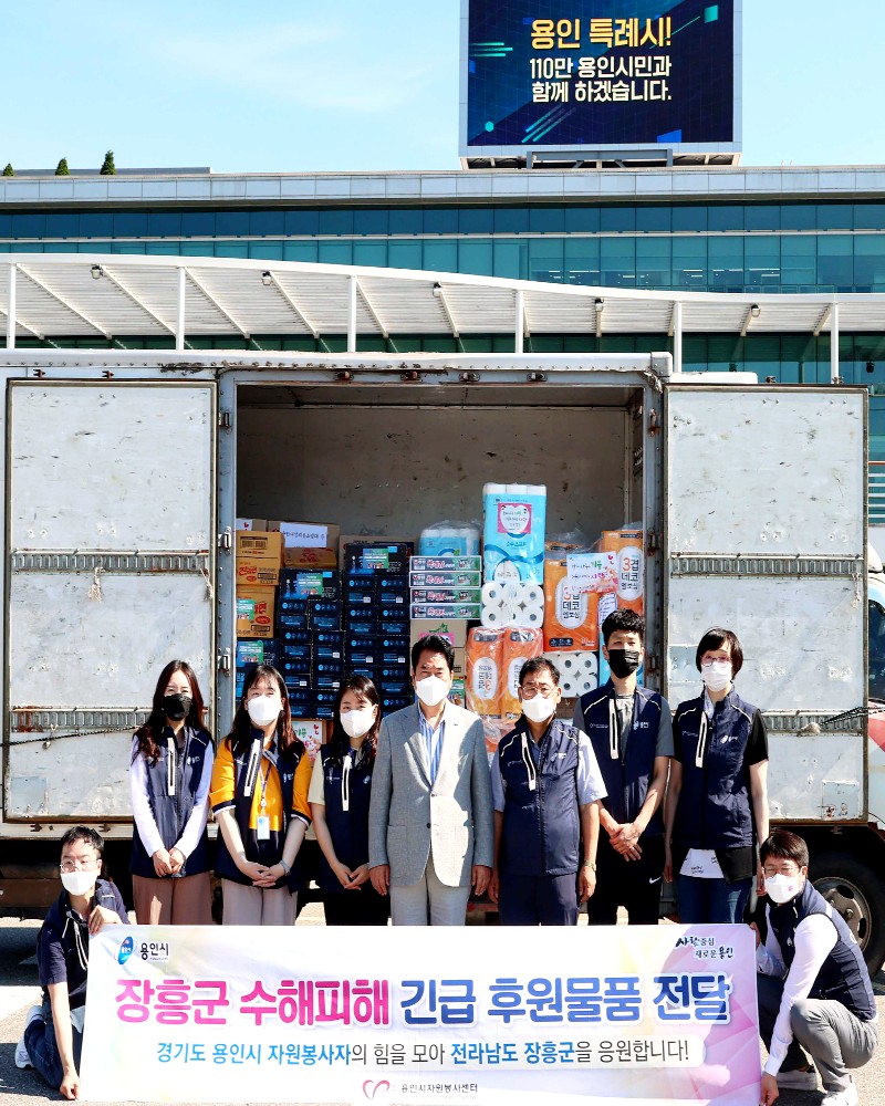 생필품은 이날 용인시자원봉사센터 관계자들이 직접 장흥군자원봉사센터를 방문해 전달했으며, 수해로 피해를 입은 85가구에 지원될 예정이다.