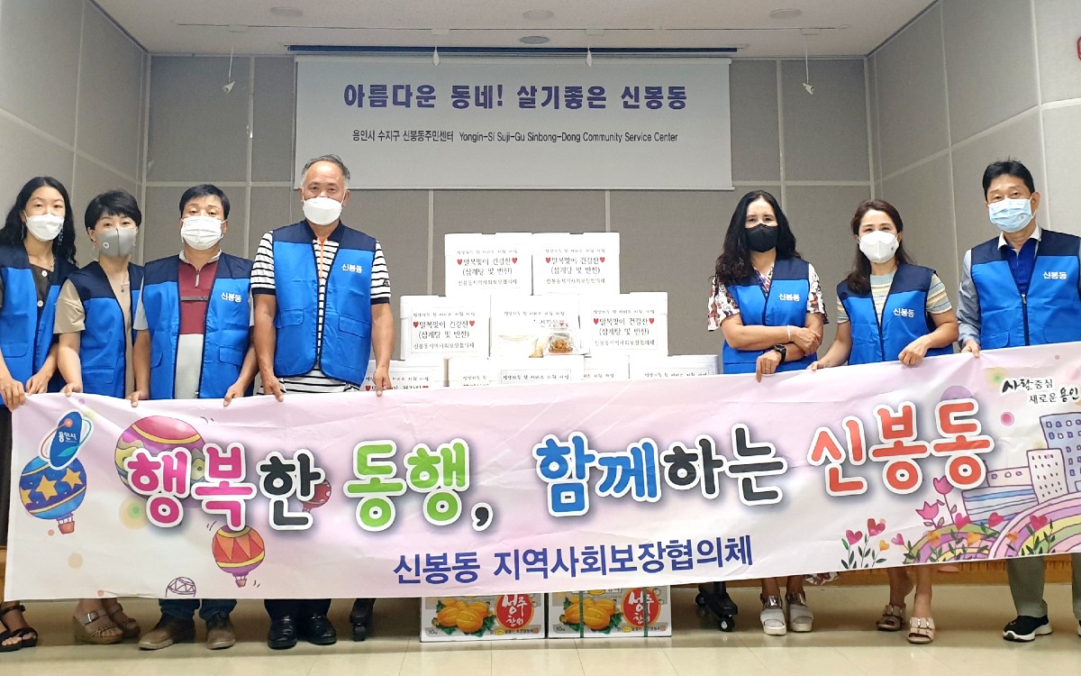 용인시 수지구 신봉동은 10일 말복을 맞아, 지역사회보장협의체가 관내 홀로 어르신 10가구에 삼계탕을 전달했다고 밝혔다.