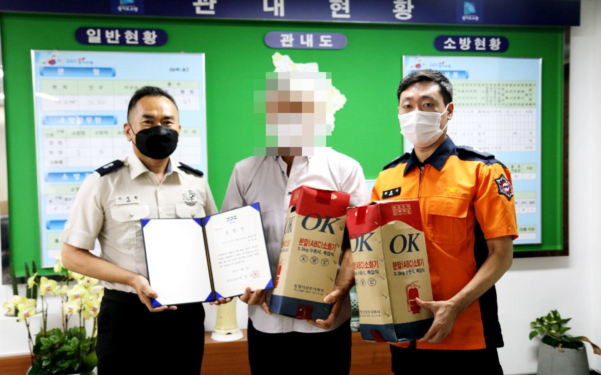 주택의 이웃 주민인 최씨는 화재가 발생한 시간에 쓰레기를 버리려고 집 밖으로 나와, 이웃 주택의 화재를 인지하고 자신의 집에 있는 주택용 소방시설(소화기)를 가져와, 자체 진화를 시도하며 119에 신고하는 등 발 빠르게 큰 피해를 막았다.