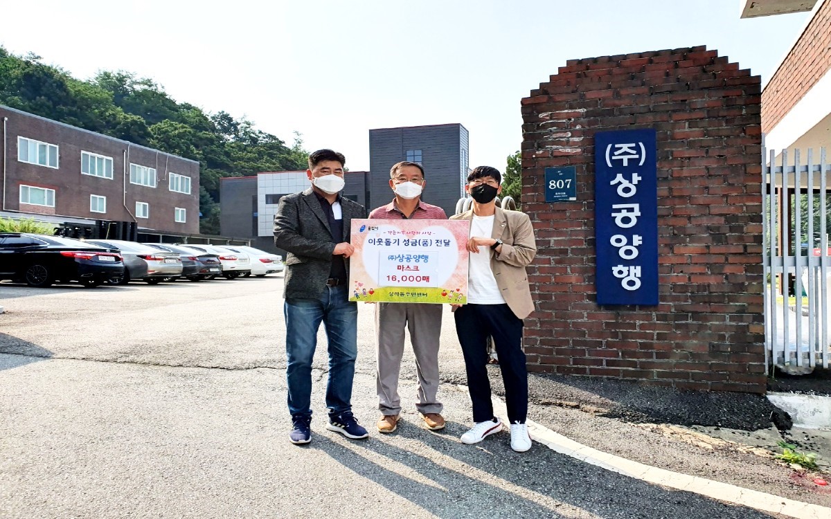 상하동에 위치한 ㈜상공양행은 매년 어려운 이웃을 위해 성품을 후원해 왔다. 동은 이번에 기탁받은 마스크를 관내 경로당 14곳 및, 저소득 홀로어르신 200가구에 전달했다.