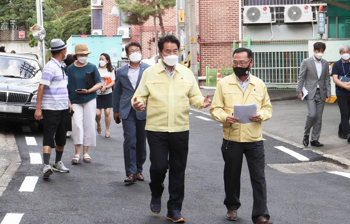 백 시장은 또 수지구 죽전2동 다가구주택 밀집지역 일대, 상습 침수 개선 현장을 점검했다.